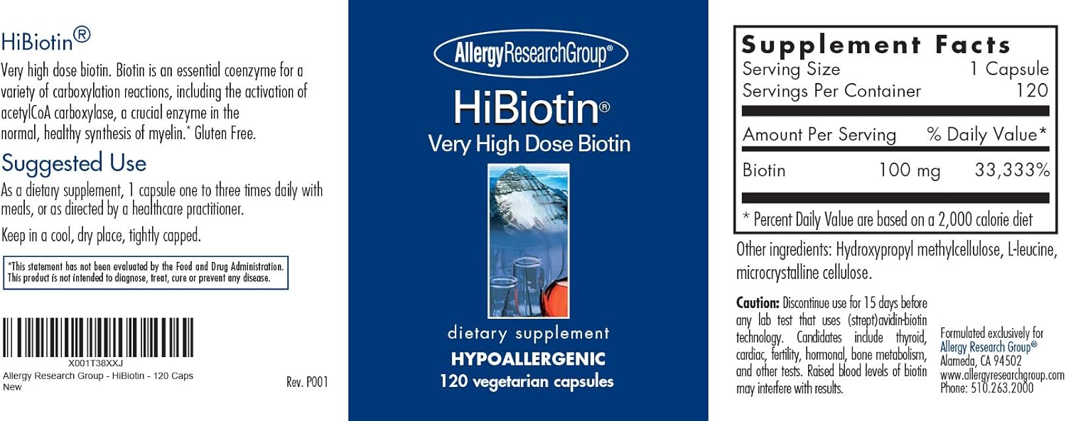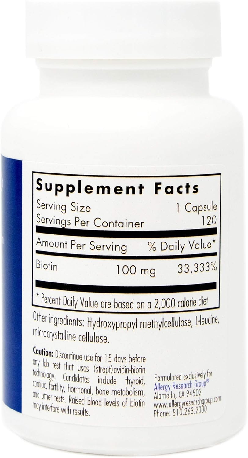 Allergy Research Group - HiBiotin - 120 Veg Caps - High Dose Biotin 100mg