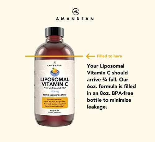 About this item A TRUE LIPOSOMAL FORMULA – Unlike capsules and softgels, our liquid vitamin C contains fully formed liposomes. Megadose with Quali-C, the gold standard of vit C. Our advanced liposomal technology supports your immune system with faster absorption and higher bioavailability. An easy-to-use liquid C that offers a potent way to supply your body with a safe & powerful antioxidant for increased energy & better health. STIMULATE COLLAGEN PRODUCTION & GET GLOWING, RADIANT SKIN – Liposomal vit C helps to regulate the synthesis of collagen in the body, which is responsible for the skin’s strength and elasticity. Combine with a collagen peptides powder to maximize anti-aging skin benefits, help reduce fine lines, and promote smooth, youthful skin. Incorporate liquid liposomal C into your K-beauty skin care routine today. PREMIUM NATURAL INGREDIENTS – Strengthen and boost your health with selectively sourced ingredients. Made with ultra-pure water, non-GMO sunflower lecithin phosphatidylcholine, natural citrus extract, and encapsulated in optimally sized liposomes for direct to cell delivery. Get results that rival Vitamin IV therapy! BOOST NATURAL DEFENSES & REDUCE FATIGUE- Vitamin C is essential for your body, helps to boost the immume system, fight free radicals, and counter tiredness. Amandean’s vitamin C supplement utilizes a superior formula which is vastly more effective than traditional forms of Vitamin C and can restore energy levels fast. BEST VALUE VITAMIN C FROM A USA BRAND YOU CAN TRUST – Get the gold standard of Liposomal Vitamins made with all-natural ingredients and manufactured in the USA. Our Lipo C formula is non-GMO, sugar-free, soy-free, gluten-free, vegan and produced at a cGMP facility. Our 6oz bottle offers maximum volume & value over competing brands. Add a 5 milliliter teaspoon to a glass of juice or water for optimal taste. If you have a problem, please reach out to us and we will take care of it!