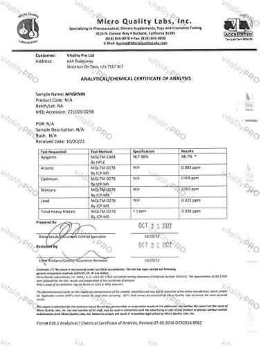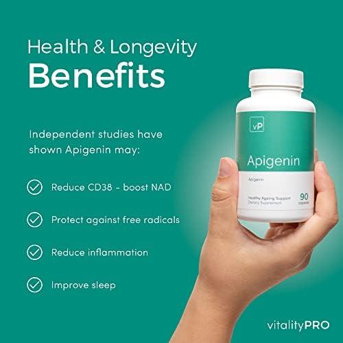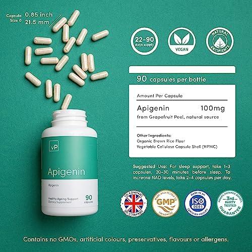 Apigenin 100mg x 90 Capsules – Third Party Tested Over 98% – Natural Apigenin Supplement Vitality Pro
