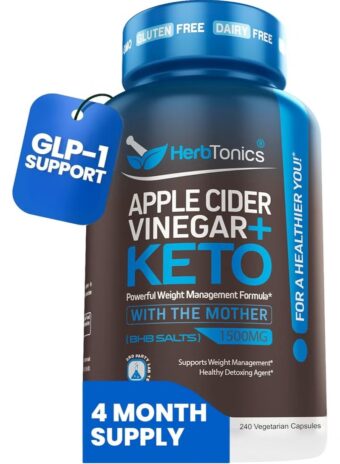 About this item POWERFUL WEIGHT LOSS AND FAT BURNING FORMULA: Quicker Fat Burning with Extreme Weight Loss. Our exogenous ketones supplement will help you get into a ketogenic state faster. The Keto beta-hydroxybutyrate (BHB) formula helps support increased blood ketone levels, support weight management and acts as an appetite suppressant. PROPRIETARY FAT BURNING FORMULA: Our patented blend of Apple Cider Vinegar (ACV) with the Mother along with BHB salts helps trigger ketosis to convert from burning glucose to ketones for increased weight loss and metabolism support. SUPERCHARGE YOUR KETO DIET: Supplementing your body with ketones may help boost your energy levels, increase mental and physical performance as well as support metabolism. A keto diet has been shown to support easier weight management and overall healthy wellness. TRUSTED FOR GENERATIONS: Apple Cider Vinegar (ACV) is a historical and potent herb that we’ve formulated into a convenient capsule. It contains all of the properties without a bitter taste or smell. Try our ACV Keto pills for increased weight loss. COMMITTED TO QUALITY: All Herbtonics products are manufactured in a FDA registered facility and tested by 3rd party labs to ensure they meet our high quality standards. (Packaging May Vary)