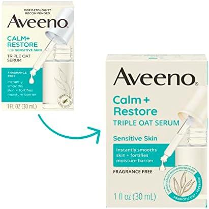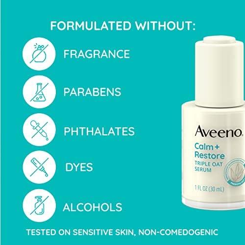 Aveeno Calm + Restore Triple Oat Hydrating Face Serum for Sensitive Skin, Gentle and Lightweight Facial Serum to Smooth and Fortify Skin, Hypoallergenic, Fragrance- and Paraben-Free, 1 fl. Oz