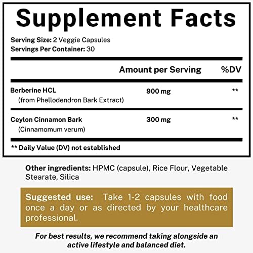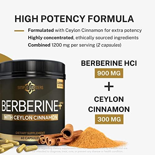 Berberine 1200mg HCL Plus Ceylon Cinnamon Capsules - Blood Sugar & Immune Support Supplements, AMPK Metabolic Activator Complex, Glucose Metabolism, Cardiovascular & Insulin Support