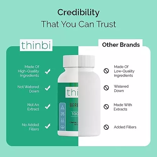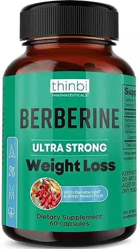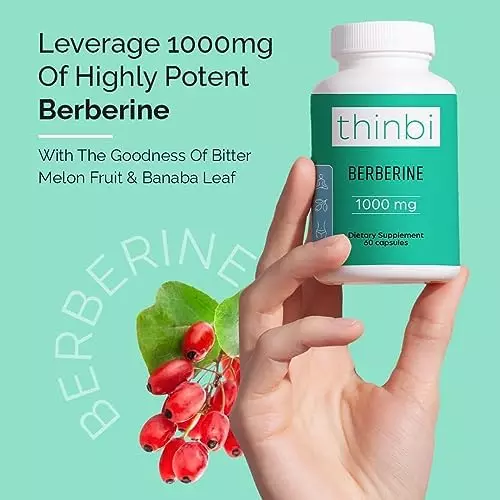 About this item Wellness From Within: Take control of your metabolic, cardiovascular and GI health with Thinbi’s Berberine Supplement. Berberine has been shown to be effective in helping you to maintain and manage a healthy weight and achieve optimal wellness. Science-Backed Metabolic Support: Our berberine capsules contain berberine HCl, which is the most researched form. One 12-week study showed that taking 500 milligrams (mg) berberine three times per day caused 5 pounds of weight loss, on average. Superior Formulation: These berberine supplements have been developed with maximized potency and efficacy in mind. Containing Bitter Melon Fruit Extract for immune system support and Banaba Leaf Extract for metabolic support. Easy To Use: Just 2 capsules daily is all it takes to benefit from highly bioavailable nutrition that is easy on the stomach. This berberine supplement may also help you maintain a healthy gut microbiome by balancing beneficial levels. Traditionally Trusted: Berberine is a well-trusted and revered supplement used thousands of years ago in Ayurvedic and Chinese herbal practices. We keep things simple, bringing you the best that Berberine offers without any fillers.