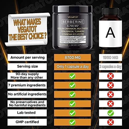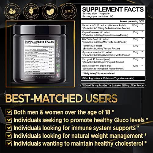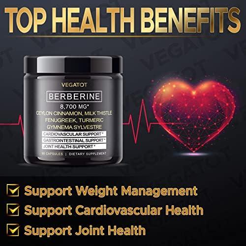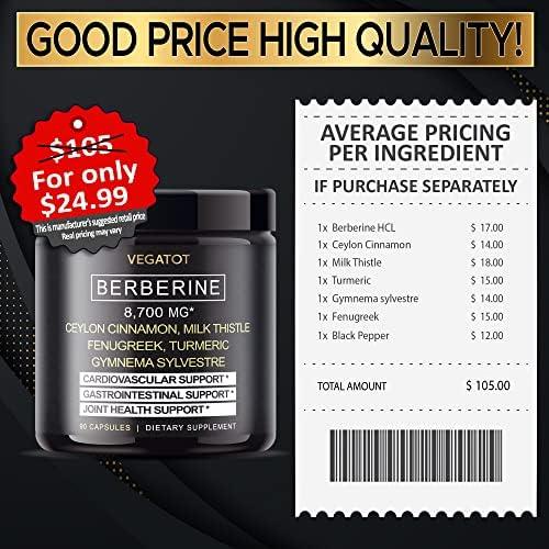 Berberine Supplement 8700MG with Ceylon Cinnamon, Turmeric, Milk Thistle, Fenugreek *USA Made and Tested* Immune System, Cardiovascular & Gastrointestinal Support