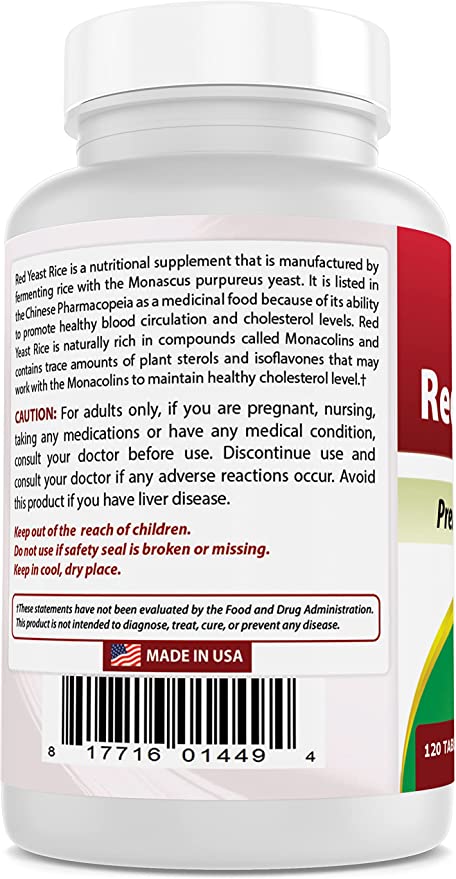 - 1200 mg of Red Yeast Rice per Tablet – 120 Tablets per Bottle.