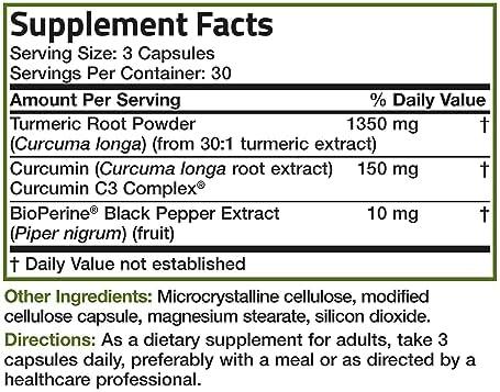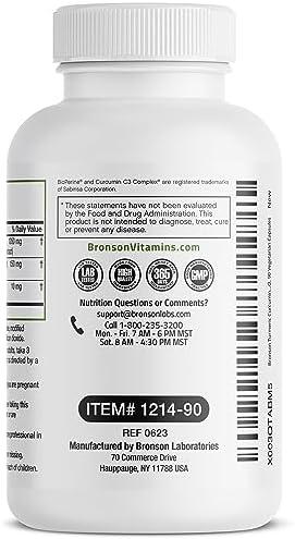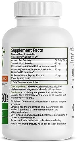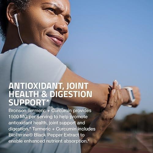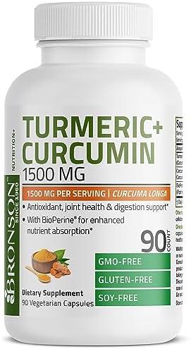 About this item High Potency Turmeric: Turmeric is an Indian spice that has been used for centuries for its variety of wellness benefits. Bronson Turmeric + Curcumin provides 1500 MG per serving (3 Vegetarian capsules) to support antioxidant, joint and digestion health.* Enhanced Absorption: Bronson Turmeric + Curcumin additionally includes BioPerine Black Pepper Extract, which has been clinically shown to provide enhanced nutrient absorption.* BioPerine helps to support the absorption of Turmeric Curcumin.* Superior Quality Vegan/Vegetarian Formula: Laboratory tested Non-GMO, Gluten-Free and Soy-Free. Bronson products are in-house tested and carefully manufactured by trained professionals in our state-of-the-art facility that is located in Hauppauge, New York. Turmeric + Curcumin 1500 MG is Vegan/Vegetarian friendly and contains no ingredients derived from animals. cGMP Premium Standards: Every product manufactured by Bronson is put through a rigorous process to ensure purity, potency and integrity. Through our very own cGMP Certified New York Facility that complies with the most current regulations, we promise to deliver top-quality supplements that are consistently verified for quality and safety. Trusted Since 1960: The pioneers of Bronson Vitamins were a group of pharmacists who witnessed the benefits of vitamins and mineral supplementation firsthand with their patients. Bronson Vitamins have been consistently mentioned by top medical professionals since our inception in 1960.