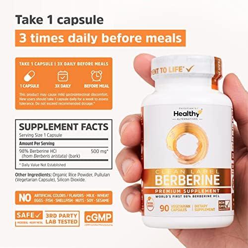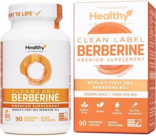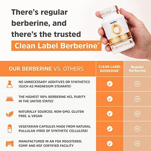 Clean Label Berberine® 1500mg – World’s First 98% Berberine HCl – Highest Purity in the US – No Unnecessary Additives or Synthetics, Non-GMO, Gluten Free, Vegan – 90 Capsules/500mg Per, Made in USA