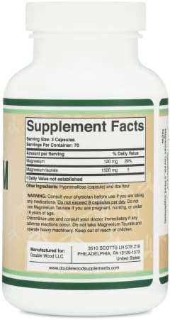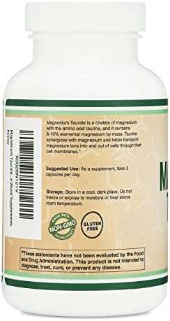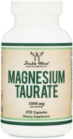 About this item BEST VALUE AVAILABLE – Double Wood includes a whopping 210 capsules each containing 500mg of Magnesium Taurate SUPPORTS CARDIOVASCULAR HEALTH – Magnesium Taurate helps support cardiovascular health by supporting blood vessel wall and artery health. CALMING EFFECT TO SUPPORT SLEEP– Magnesium Taurate helps increase GABA which encourages relaxation as well as sleep. MADE IN THE USA, NON-GMO, GLUTEN FREE – All Double Wood Products are Made in the USA, NON-GMO, and Gluten Free. Our Magnesium Taurate product is also Vegan friendly.