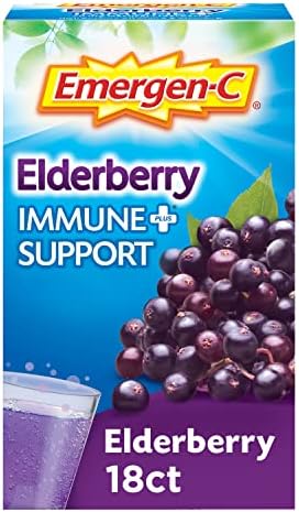 Emergen-C Immune+ Vitamin C 1000mg (18 Count, Elderberry) Dietary Supplement Fizzy Drink Mix Powder Packets