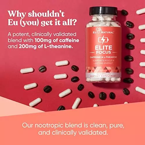 Eu Natural Elite Caffeine Energy Pills with L-Theanine, 120 Soft Capsules