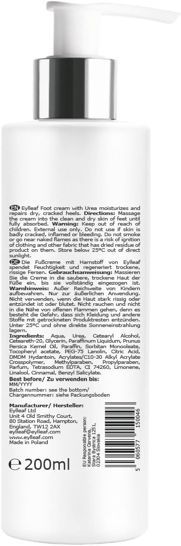 Eylleaf Foot Cream 30% Urea | Foot Care Treatment for Dry Skin Feet and Cracked Heels 250ml