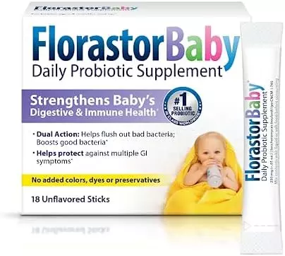 About this item Daily Probiotic For Babies: This probiotic naturally restores gut balance by flushing bad bacteria; Safe for baby with non-GMO ingredients and no added colors, dyes, preservatives or flavoring Digestive and Immune Support: Florastor helps your baby absorb precious water and nutrients by increSKUg the natural flora in the digestive tract and supports overall health by strengthening digestive balance and gently stimulating immunity The Probiotic of Choice: Florastor is the number 1 probiotic in its class around the world; We use a unique and effective probiotic strain with over 65 years of use and research Antibiotic Resistant: Our resilient probiotic formula thrives even during antibiotic use, with proven resistance to 16 of the most common oral antibiotics so it can help restore your baby’s gut flora balance Made with ingredients that are vegetarian, gluten-free, titanium dioxide free and appropriate for lactose intolerance