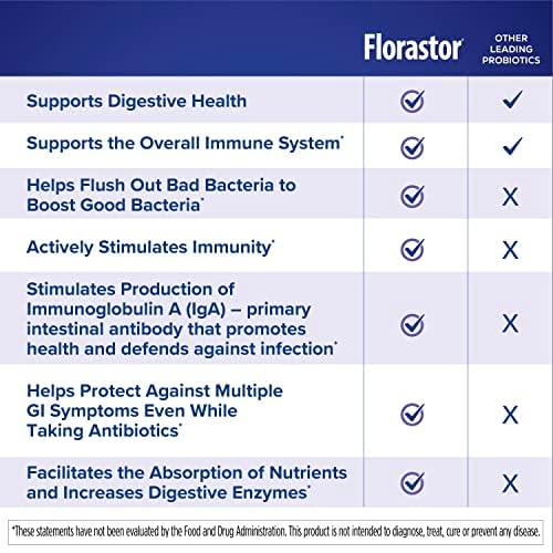 Florastor is a daily probiotic supplement that strengthens your digestive balance and supports a healthy immune system. Florastor is the ONLY probiotic brand with Saccharomyces boulardii lyo CNCM I-745, a unique probiotic strain with a larger, stronger cell structure than other probiotics. Saccharomyces boulardii lyo CNCM I-745 is shown to help boost your body’s natural production of IgA – an important antibody in your digestive system that helps fight off potentially harmful bacteria. With just two capsules once or twice a day, Florastor Probiotic Supplements help support a healthy digestive tract – where 70% of your immune system lives. Florastor is a gluten-free, non-GMO probiotic offered in vegetarian capsules. Our patented freeze-drying process gives Florastor a three-year shelf life protecting the live cells without refrigeration. It’s perfect for travelers on-the-go and those with active lifestyles. Important Information. Contains lactose (sourced from milk). The ingredients in this dietary supplement are generally recognized as well tolerated when taken as directed. Instances of side effects while taking Saccharomyces boulardii lyo CNCM I-745 are rare with less than 1% of individuals reporting mild constipation or thirst. In very rare cases, allergic reaction (such as skin rash) may occur. Not recommended for use in an acute-care setting for or around those with vascular line access. Do not use if pre- or post- organ or bone marrow transplant, severely immunocompromised, or critically ill. Do not use if allergic to any components (especially yeast).