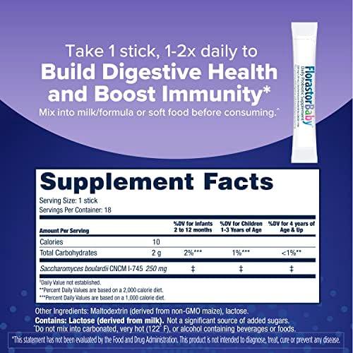 Florastor Baby Daily Probiotic Supplement, Powder Mixes with Milk, Formula or Soft Foods, Saccharomyces Boulardii CNCM I-745 (18 Powder Sticks)