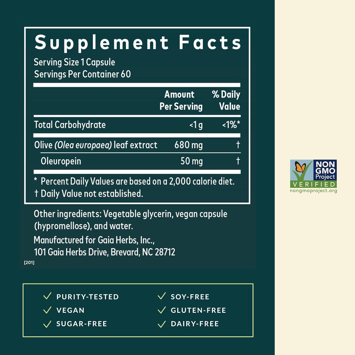 Gaia Herbs Olive Leaf – Traditional Immune Health Support – Immune System Supplement with Olive Leaf Extract and Oleuropein – 60 Vegan Liquid Phyto-Caps