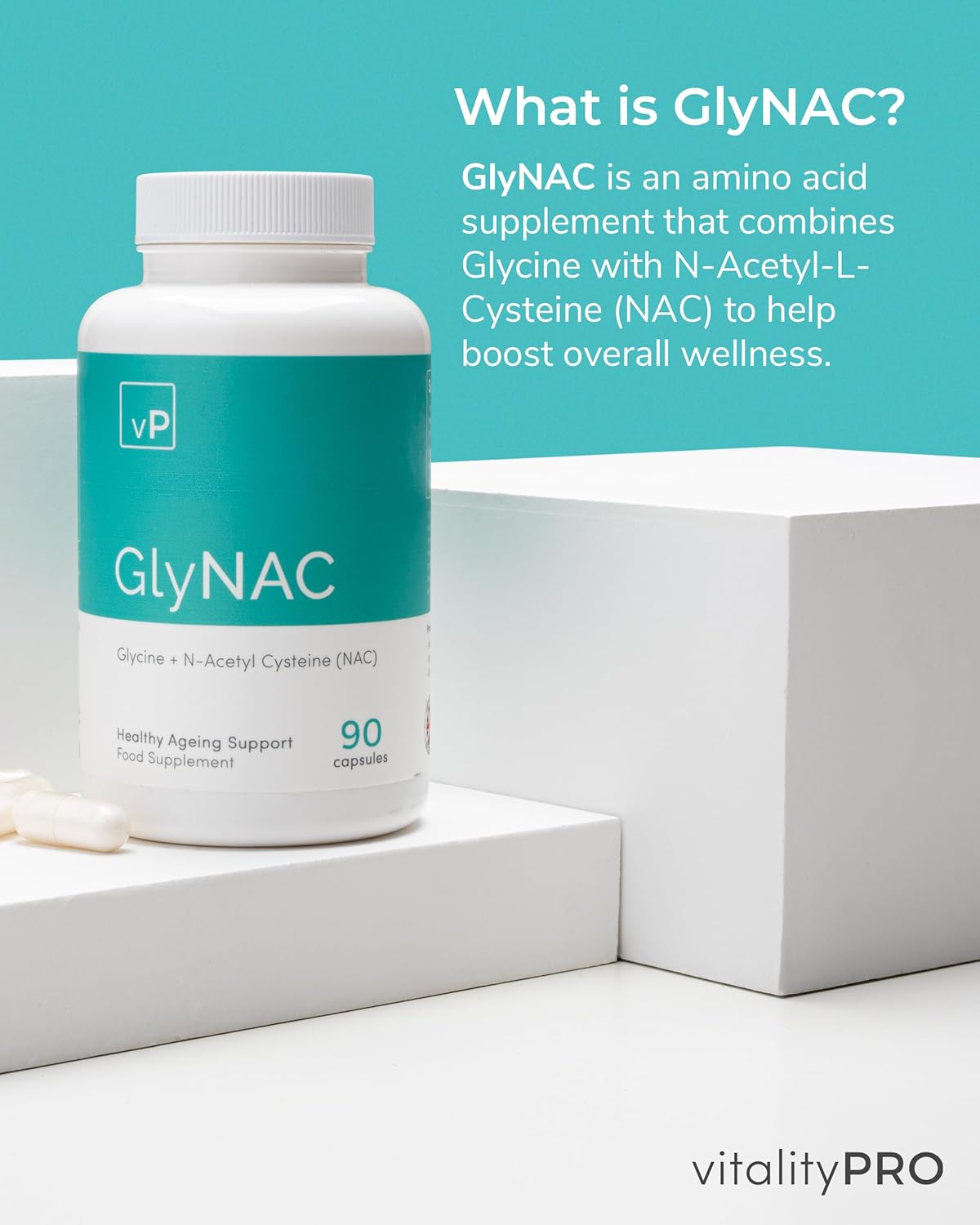 GlyNAC, Glycine & NAC Supplement, 90 Capsules - 350mg N Acetyl Cysteine & 350mg Glycine Supplement for Metabolism & Immune Support - Vegan Dietary Supplements for Men & Women by Vitality PRO