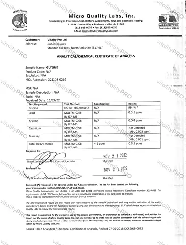 Third-Party Verified: Our GlyNAC supplement undergoes independent third-party testing to ensure over 98% purity and exceptional quality. It is vegan-friendly, with no GMOs, artificial colors, preservatives, or flavors.