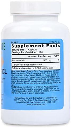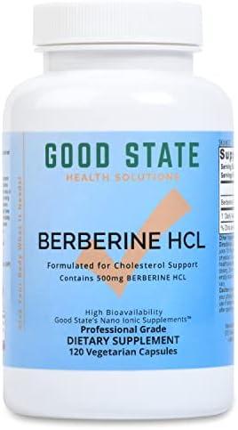 Good State Berberine HCL 500mg Nano Ionic Dietary Supplement Capsules for Men and Women, Formulated for Cholesterol Support, 120 Count Bottle