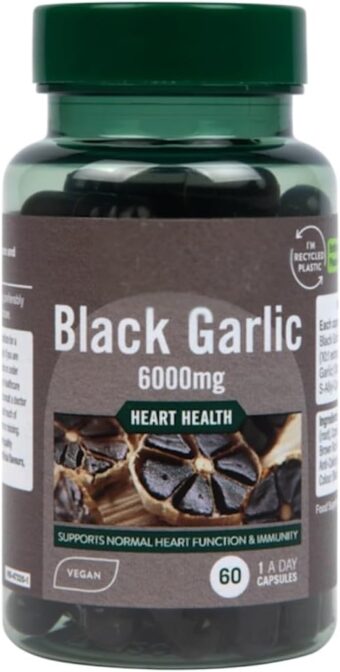 Holland & Barrett Black Garlic 6000mg Capsules are made from fermented garlic to enhance its natural properties and create a smoother, milder form. Each capsule is designed to help support normal heart function and contribute to a healthy immune system.