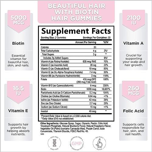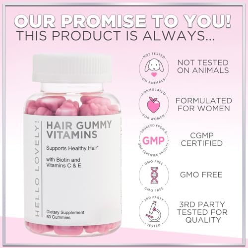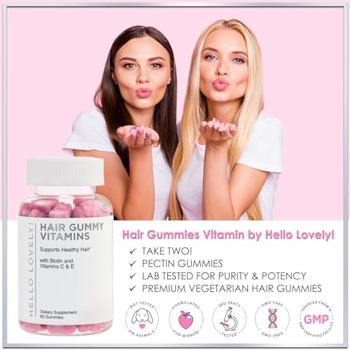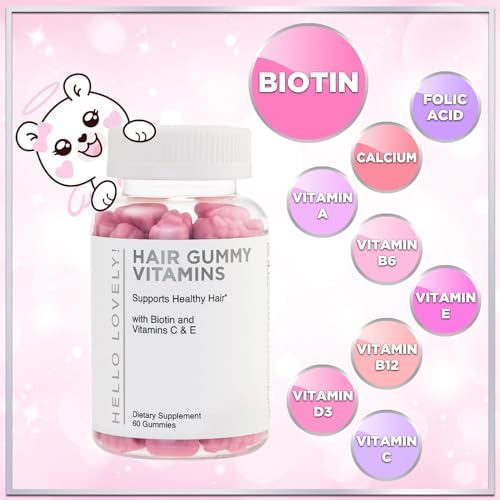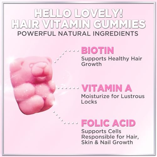 Hello Lovely! Angel Bear Gummies with Biotin 5000 Mcg Vitamin C & E for Faster Hair Growth, Premium Pectin-Based, Non-GMO Red Berry Supplement