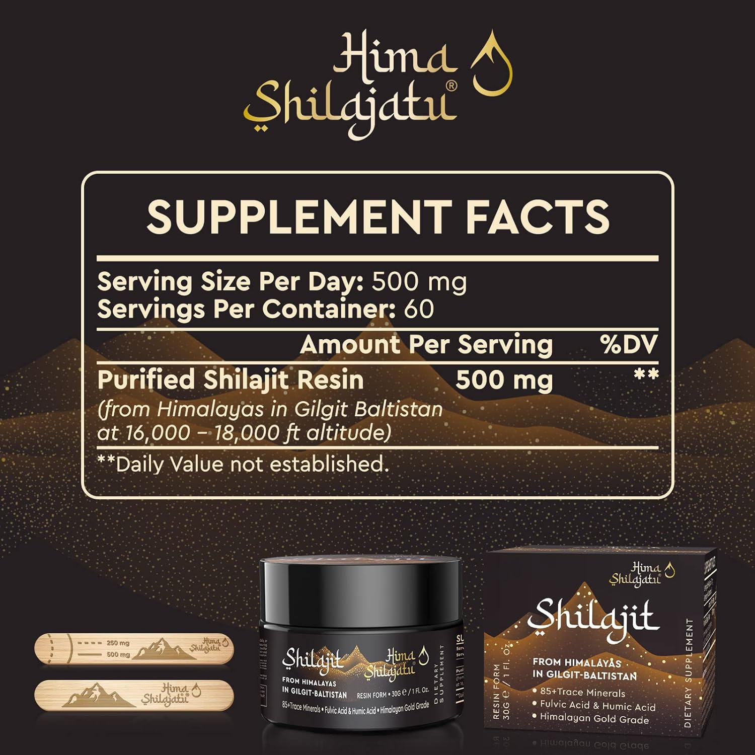 Hima Shilajatu sources its Shilajit from the Gilgit Baltistan region, harvested at elevations over 18,000 feet. The resin is then purified using traditional Ayurvedic methods to maintain its potency and purity.