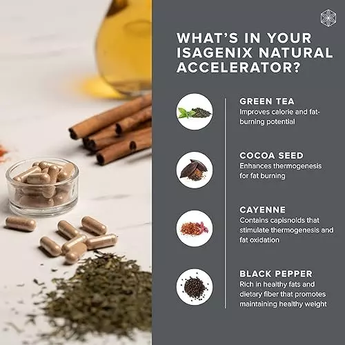 Isagenix Natural Accelerator - Metabolism Boost Capsules with Green Tea Extract, Black Pepper, Niacin and More - 60 Capsules Health & Household