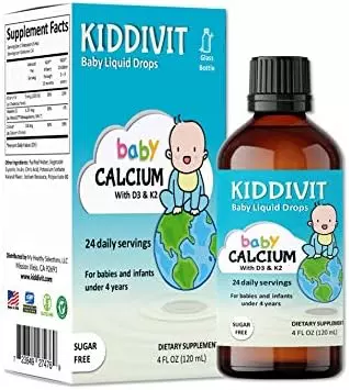 Kiddivit Baby Calcium was meticulously formulated with Calcium, Vitamin K2, and Vitamin D3 for strong and health bone growth.* Each bottle is packed with high quality ingredients for potency and efficacy. Each serving contains 130 mg of Calcium (as Calcium Citrate), 1.25 mcg of Vitamin K2 (as MenaQ7 Menaquinone, MK-7, and 200 IU of Vitamin D3.