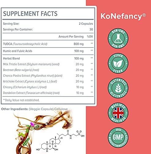 KoNefancy TUDCA Supplement combines the powerful liver-detoxifying benefits of TUDCA (Tauroursodeoxycholic Acid) with a potent herbal blend and fulvic & humic acids for comprehensive liver, bile flow, and gut health support.