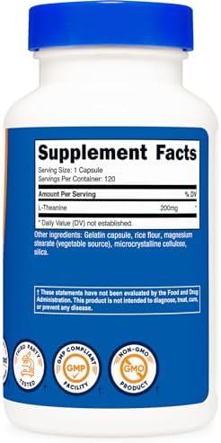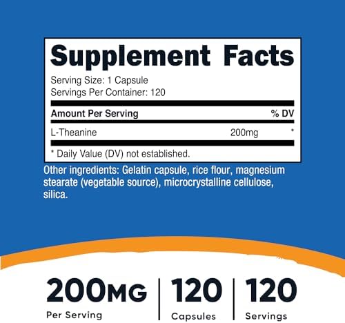 L-Theanine 200mg, Double Strength, Supplement – 120 Capsules