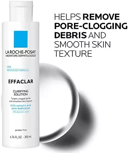La Roche-Posay Effaclar Clarifying Solution Face Toner for Acne Prone Skin with Salicylic Acid & Glycolic Acid gently exfoliates and removes excess dirt and dead skin cells to leave skin feeling refreshed and even. Acne face toner contains Glycolic Acid – penetrates deep to unclog pores and smooth skin texture, and [0.5%] Salicylic Acid Acne Medication – helps clear blackheads, whiteheads and acne blemishes. Use as an acne face toner daily for continuous results.