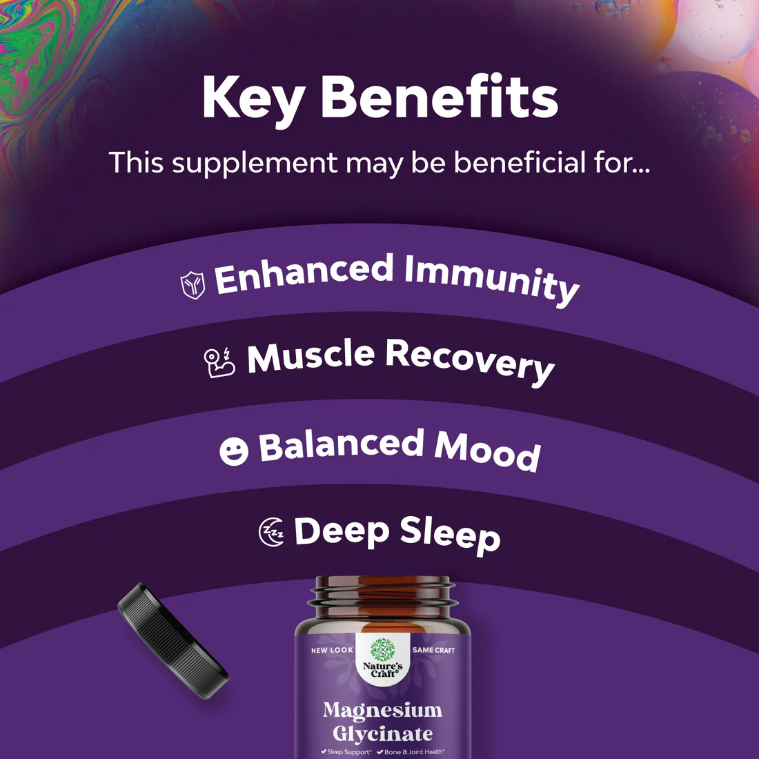 • Magnesium for Sleep Support: High-absorption magnesium glycinate capsules designed to promote restful sleep and a refreshed morning.