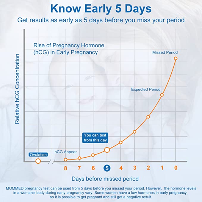 • Rapid Detection: There is no need to collect liquid when using MOMMED pregnancy test sticks, hold the absorbent tip in the urine stream for 5 seconds, and lay the blue pregnancy test flat. Results of best pregnancy test in fastest 1 minute.