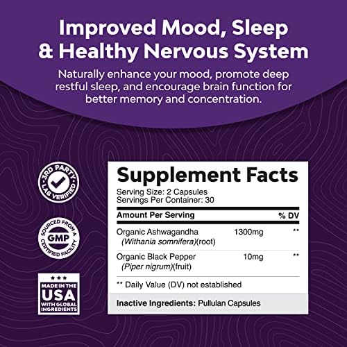 Mood Enhancer Organic Ashwagandha Capsules -Vegan Ultimate Relaxation Pure Ashwagandha Powder for Thyroid Energy Focus and Adrenal Support -Premium Ayurvedic Adaptogen Ashwagandha for Men and Women