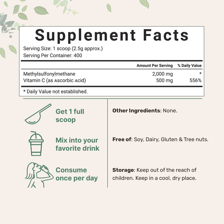 MSM Powder (Methylsulfonylmethane) with Vitamin C | 1Kg
