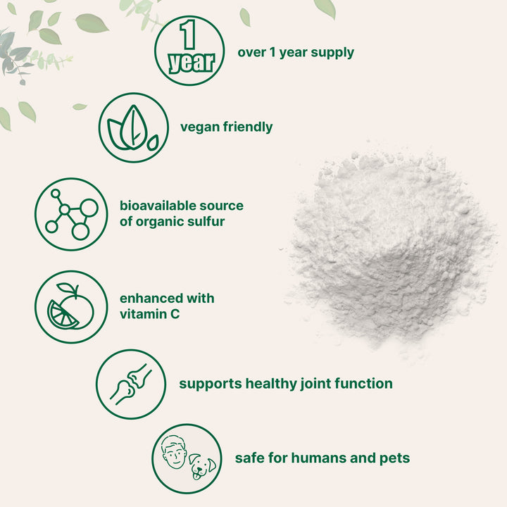 - Micro Ingredients offers a 2-in-1 MSM powdered supplement that is enhanced with vitamin C for optimized bioavailability. Contains a rich source of natural organic sulfur from raw ingredients and is vegan and pet friendly. Â