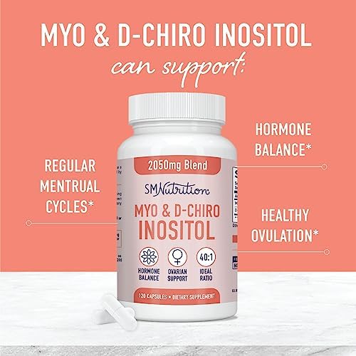 About this item WOMEN’S HORMONE BALANCE: Myo & D-Chiro Inositol is a premium women’s hormone balance supplement with a blend of ingredients that work side-by-side to support women’s reproductive health and restore balance to the monthly cycle.* IDEAL 40:1 RATIO: Our inositol pills are formulated to match the body’s normal ratio of 40:1, with 2,000 mg of Myo-Inositol and 50 mg of D-Chiro Inositol powder per serving. OVARIAN HEALTH & MENSTRUAL SUPPORT: By working together to support hormone balance, Myo Inositol and D Chiro Inositol encourage healthy ovulation and regular, more comfortable menstrual cycles.* BRING BALANCE TO YOUR BODY: The benefits of a Myo and D-Chiro Inositol supplement extend beyond ovarian health! By supporting your body’s healthy hormone rhythms, this formula can help with metabolism, energy, bloating, skin health, and more.* 30-DAY SUPPLY: Myo D-Chiro Inositol by SMNutrition is Vegan, Hormone-Free, PETA.org Certified, and formulated Gluten-Free and Non-GMO. It is Third-Party Tested by Intertek Laboratories, formulated without the top 9 allergens, and manufactured in a facility that is certified GMP compliant with NSF standards.