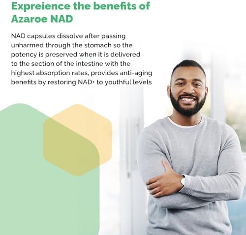 About this item Powerful Anti-Aging NAD Supplement: Azaroe capsules helps boost NAD+, enhance energy and support immune system. It’s a powerful antioxidant for anti-aging and skin health. 99% High Purity Trans-Resveratrol: Trans-Resveratrol has been shown to be the most potent natural activator of Sirtuins (proteins associated with health and longevity). Working synergistically with NAD to accelerate DNA repair makes this supplement even more powerful. Combined with Black Pepper extract can greatly increase bioavailability and absorption rate to keeps you naturally young! 3 in 1 Powerful Upgrade Combination: The 3-in-1 powerful formula ensures maximum absorption, giving you a more powerful Antioxidant & Anti-Aging Supplements. Azaroe upgrade from single-component to composite-component, which improves the conversion efficiency of NAD+ greatly, changes the disadvantages of traditional supplement with low absorption and single effect Life Like Never Before: Our unique formula helps your cells metabolize & synthesize nutrients more effectively to boost energy, effectively Boosting NAD+ and supporting cellular repair.When combined with Resveratrol this supplement becomes even more powerful. Quality Assured: We provides scientifically-formulated supplements to support each individual’s potential to enjoy optimal life. Each package comes with 30 servings (60 capsules) to last you 1 months. Just take 2 capsulel daily, helping you health sustains highest levels of NAD+.