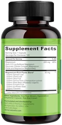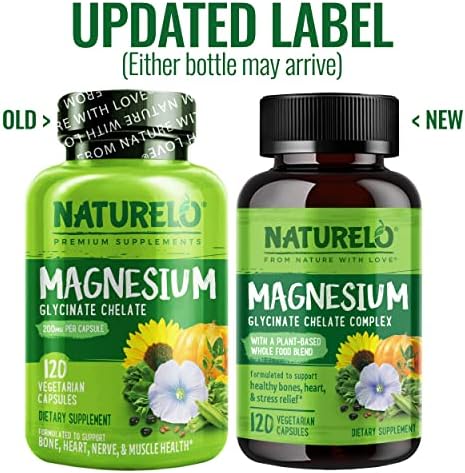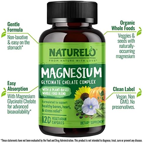 NATURELO Magnesium Glycinate – 200 mg Glycinate Chelate with Organic Vegetables to Support Sleep, Calm, Muscle Cramp & Stress Relief 240 Capsules