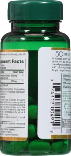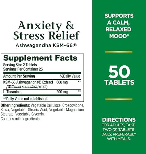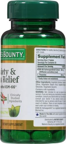 Nature’s Bounty Anxiety and Stress Relief Ashwagandha KSM-66,50 Tablets