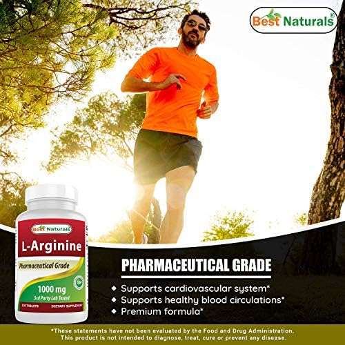 (New Improved Formula) Best Naturals L-Arginine 1000 mg 120 Tablets – Pharmaceutical Grade L Arginine Supplement Promotes Nitric Oxide Synthesis