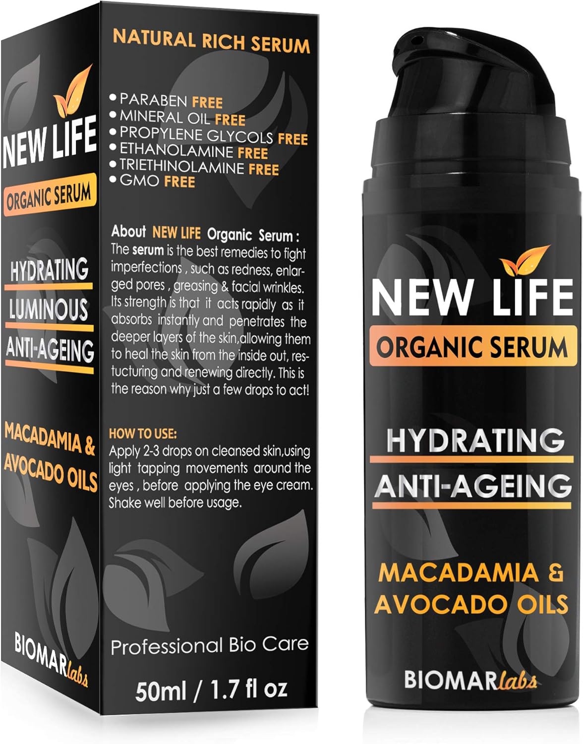 NEW LIFE Bio Organic Face Serum – Deep Hydration Natural Serum , Anti-Wrinkles, Enlarged Pores, Anti Ageing , Moisturising, Vegan, Eye Serum , Natural Skin Care – 50ml by Biomar