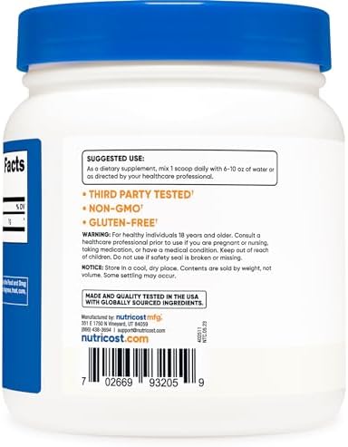 Allergen Information Gluten Free Serving Recommendation One Scoop Brand Nutricost Format Powder Age Range Description Adult