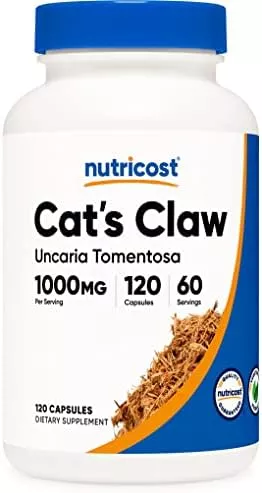 Nutricost’s Cat’s Claw contains 1000mg of Cat’s Claw Extact (bark) per serving (500mg per capsule) and 120 vegetarian capsules (60 servings) per bottle. They are gluten free, vegetarian friendly, non-gmo, and made in a gmp compliant, FDA registered facility.