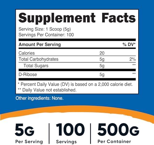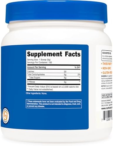 About this item 100% Pure D-Ribose Powder Clean & Pure Powder Factory Sealed, Lab Tested, Guaranteed Purity 100 Servings Per Bottle Made in the USA
