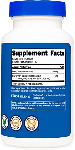 Nutricost Diindolylmethane Plus BioPerine Capsules – 300mg,120