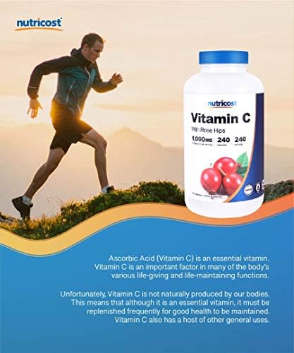 Nutricost Gluten-free Vitamin C with Rose Hips Supplement (1025mg,240 Capsules)
