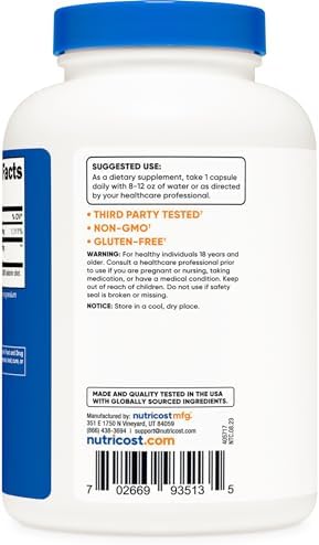 About this item Brand: Nutricost Package contain: 240 Capsules Non-GMO, Gluten Free Formulated with care