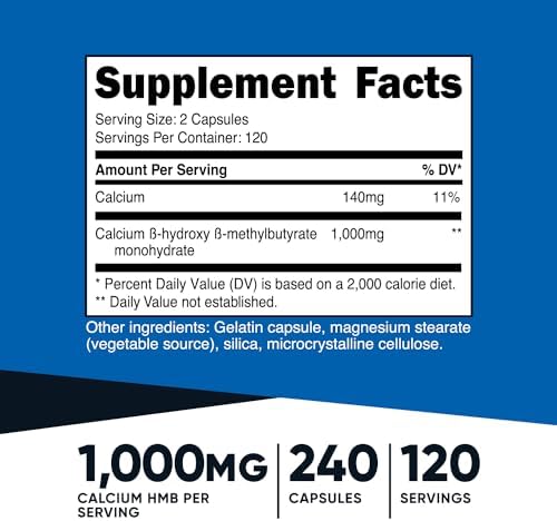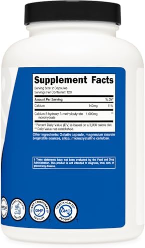 Nutricost HMB (Beta-Hydroxy Beta-Methylbutyrate) 1000mg (240 Capsules) – 500mg Per Capsule, 120 Servings – Gluten Free and Non-GMO