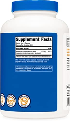 Nutricost Magnesium Complex 500mg, 240 Capsules – Magnesium Oxide, Citrate, and Glycinate – Gluten Free and Non-GMO