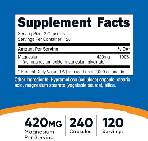 Nutricost Magnesium Glycinate 420mg, 240 Capsules – 120 Servings, Non-GMO, Gluten Free, Vegetarian Friendly